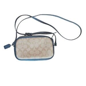 Coach Crossbody Pouch In Signature Canvas Coach Radial Rainbow Navy Leather NWOT