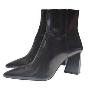 Zara Faux Leather Pointed Toe Geometric Heel Zipper Ankle Booties Womens Size 37