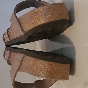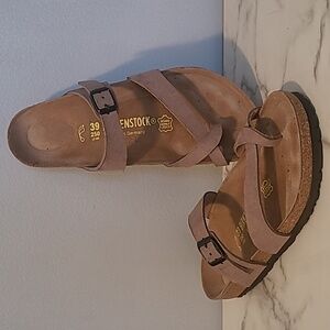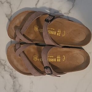 Birkenstock Mayari Taupe Tan Leather Thong Strappy Sandals W8 M6 Boho Casual