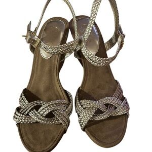 Chaps Gold Braided Wedge Sandals