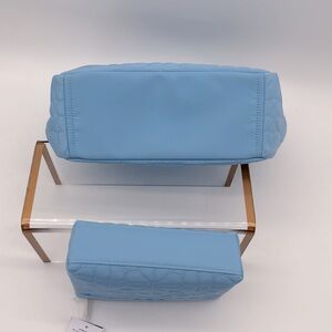Kate Spade Spade Flower Quilted Fabric Medium Tote & Cosmetic Pouch Montauk Blue