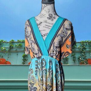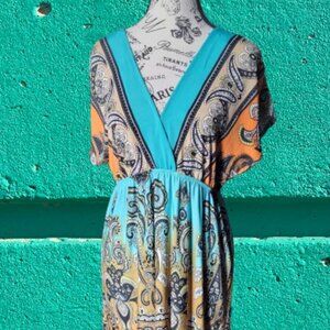 Christina Love Paisley Turquoise and Orange Cover Up For Swimsuit or can be worn as a sundress and is in Excellent Condition!