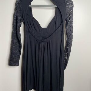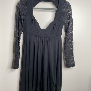 Anthropologie Lace Slip Night Black Mini Dress Size XS NWT Stretch Lace Sleeves