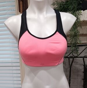 VSX Sport Bra Women Yoga Athletic Neon Coral Black Padded Workout Wide Strap 34C