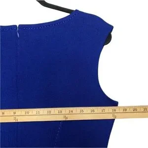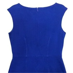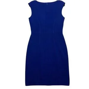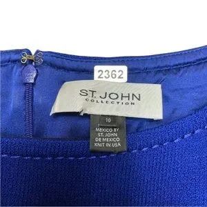 This elegant St. John dress showcases a sleek sheath silhouette in a rich blue color, perfect for work or cocktail events. The sleeveless design and crew neckline add a touch of sophistication, while the midi length offers a timeless appeal.