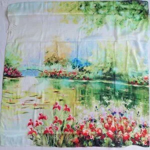 Vimate | New silk scarf green floral watercolor 34” x 34” square scarf