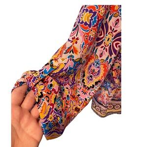 Zac & Rachel Colorful Bohemian Floral 3/4 Sleeve Blouse