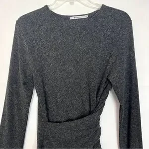 Gently used…stylish gray dress with long sleeves and a unique twist design!