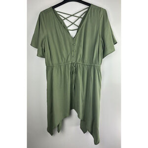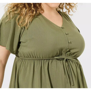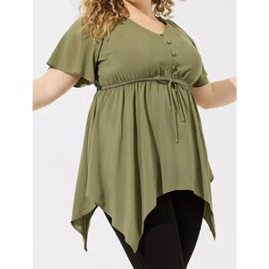 NWT Torrid Babydoll Challis Sharkbite Flutter Sleeve Top Green Plus Size 2 2X
