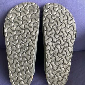 Comfortable black Birkenstock sandals with adjustable straps.