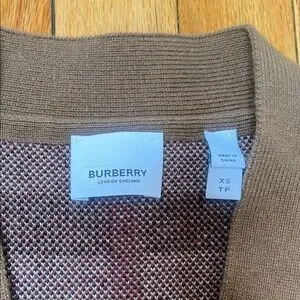 Burberry Birch check cardigan sweater in XS but it can fit up to a size M. It’s Pristine condition!!! Never been worn! But no dust bag or box available. Sorry.