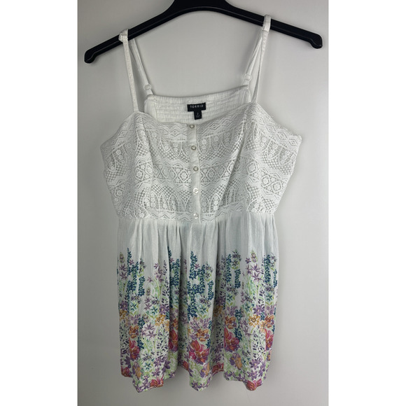 Torrid Babydoll Gauze Crochet Trim Cami White Floral Sleeveless Plus Size 2 2X