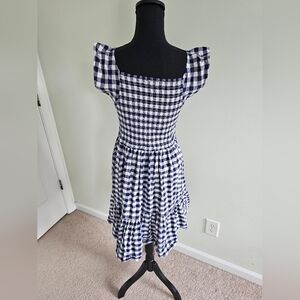 J. Crew Crewcuts Girls' smocked ruffle dress gingham ink/white - Sz 14
