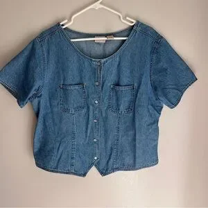 Vintage Crossroads Denim Pearl Snap Button T-Shirt