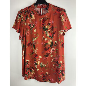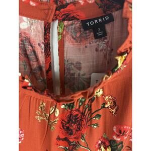 NWT Torrid Rayon Slub Mock Neck Flutter Sleeve Top Floral Orange Plus Size 2 2X