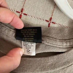 In great vintage condition, small spot on the B (see photo) Discolored area on back up by crew neck.