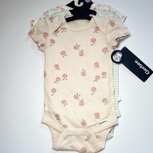 NWT 0-3, Gerber Baby Bodysuit Set with Peach Print