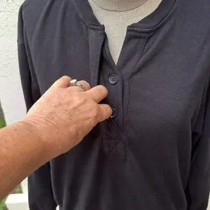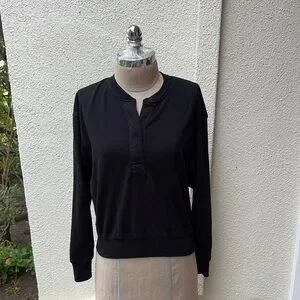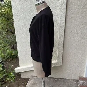 LEEN Loopwheel elegant thick black women's sweatshirt with top buttons. This elegant luxury brand uses only the finest materials. So soft and comfy to the touch. Comfortable and stylish, ideal for everyday wear. Looks great with everything! From Saks Fifth Ave in Beverly Hills. Made in USA. First pix stock photo in a little different style. Mine has top buttons. TIMELESS QUALITY PIECES. LEEN® The aim is to create go-to pieces that tie everything together by way of strategic details, premium fabrics, and timeless styles. Size O in LEEN sizing, which is like an XS. See pix of measurements