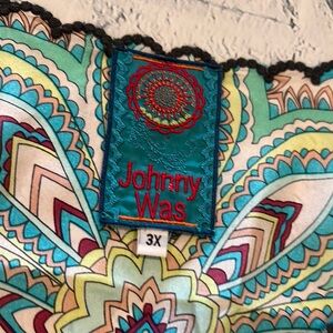 Johnny Was Vibrant Mint Green Mandala Silk Blouse
