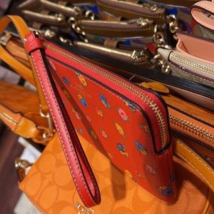 Coach Corner Zip Wristlet With Mini Vintage Rose Print IM/Miami Red Multi