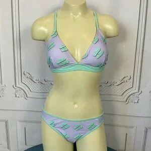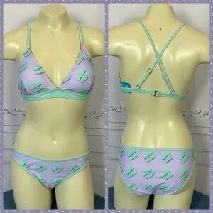 Undercurrent 2 Piece Triangle Top Swimsuit Purple Green Flip Flops Juniors Med