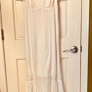 Like most Reformation dresses, this one has a cool girl vibe while being sexy and also feminine. Winter White with tights and boots and lightweight for spring/summer.