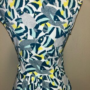Lands End Women's Small Cap Sleeve Twist Front Fit and Flare Dress Fish Print