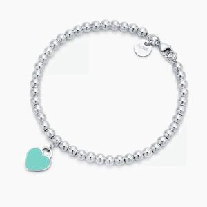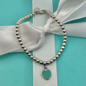 Sterling silver tag with Tiffany Blue enamel finish in a bead bracelet