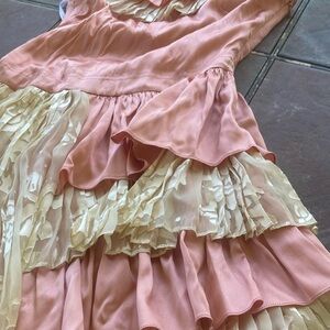 Betsey Johnson Silk Dance Dress in Pink and Cream with Cascading Ruffles