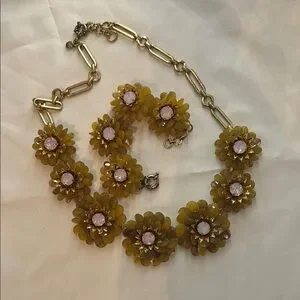 J. Crew Gold and Yellow Floral Necklace and matching bracelet
