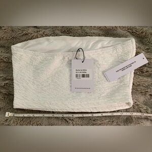Chic white crop top. Textured fabric. Strapless design. Perfect for layering.