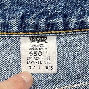 Levi's 90s vintage 550 dark wash cut off denim jean shorts. Raw hems. Made in Mexico. Marked as a size 12--I am listing these as a size 28 based on measurements and the no-stretch, heavy weight cotton denim fabric. Please see photos for measurements.