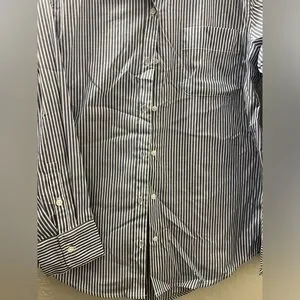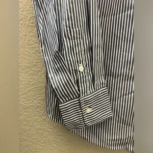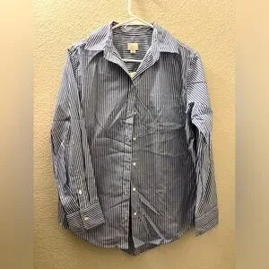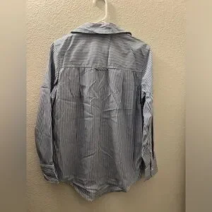 Stylish woman shirt featuring classic blue stripes. Perfect for both casual and formal occasions.