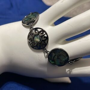 Lia Sophia necklace hematite genuine abalone filigree & matching bracelet