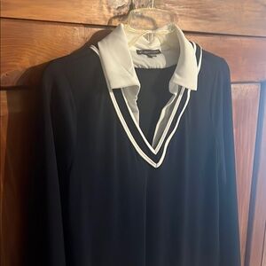 Elegant blue and white V-neck top with stylish trim. Perfect for any occasion. New without tags
