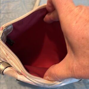 Elevate your style with the Coach Signature Crossbody Bag. Featuring a chic pink and cream design with metallic notes. This bag is perfect for any occasion. Enjoy the convenience and elegance of Coach.