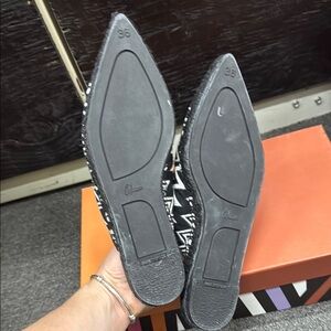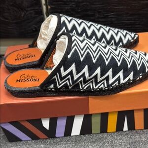Stylish shoes with a bold black and white zigzag pattern. Perfect for adding a statement to any outfit.