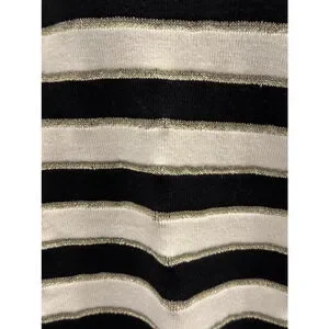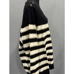 Elevate your wardrobe with this chic Lane Bryant black and gold striped sweater, perfect for any occasion. Featuring bold horizontal stripes in black and metallic gold, this sweater adds a touch of elegance to your everyday look. The shoulder button detail provides a modern twist, while the soft knit fabric ensures comfort and warmth.