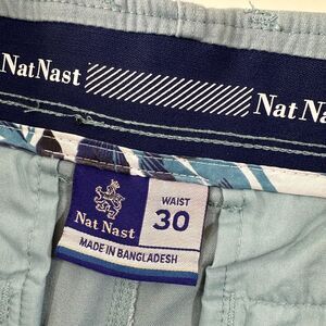 Nat Nast Chino Shorts Mens 30 Slate Green/Blue Regular Fit Flat Front Medium Wash Comfort