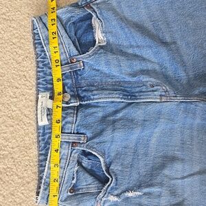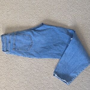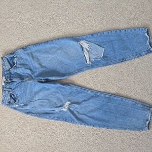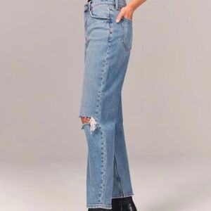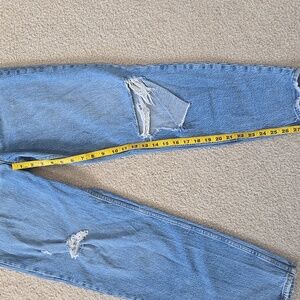 Abercrombie & Fitch The 80's Mom High Rise Curve Love distressed jeans. Size 28/size 6 long. 28 inch inseam. 99% cotton, 1% elastane. No stretch. Thick denim. Very good pre-owned condition.