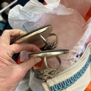 Tory Burch Miller sandals in crinkled gold size 9. So versatile- Goes with anything! Perfect for any occasion, these sandals offer both comfort and sophistication. Worn just a few times and in great condition.
