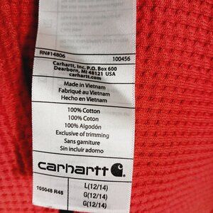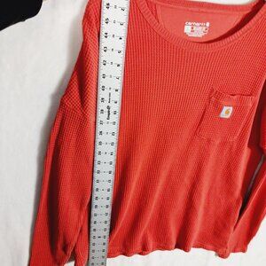 Carhartt, Relaxed Fit Orange Waffle Weave Fabric Thermal, Long Sleeve, Crew Neck, Front Pocket w/ Logo, Large (12 - 14), Soft and warm. Very good pre-owned condition.