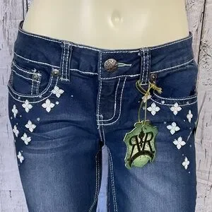 🎀HP🎀 Request Jeans Skinny Distressed Faded Jeans White Flowers & Stitching 9