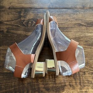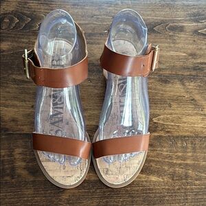 Sam and Libby Women's Faux Leather Brown Ankle Strap Sandals Size 7