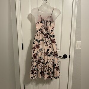 Charming floral dress in a soft pink hue, perfect for any occasion. Comfortable and stylish.