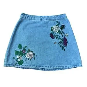 HM Divided Denim Embroidered Floral Mini Skirt Floral y2k Size 6 Zippered