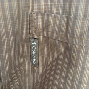 Columbia Sportswear Short Sleeve Pocket Button-down Shirt Fish Brown Cabin Plaid