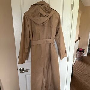 Stay stylish and protected with the London Fog Women's Trench Coat. This elegant tan coat is perfect for any occasion. Hood and belt are detachable.