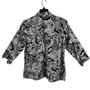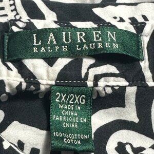 Lauren Ralph Lauren Womens Artsy Floral Button Up Top Black Lightweight 2X