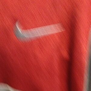 Stylish Nike track jacket in red and gray. Features a zip-up front and sporty design.
